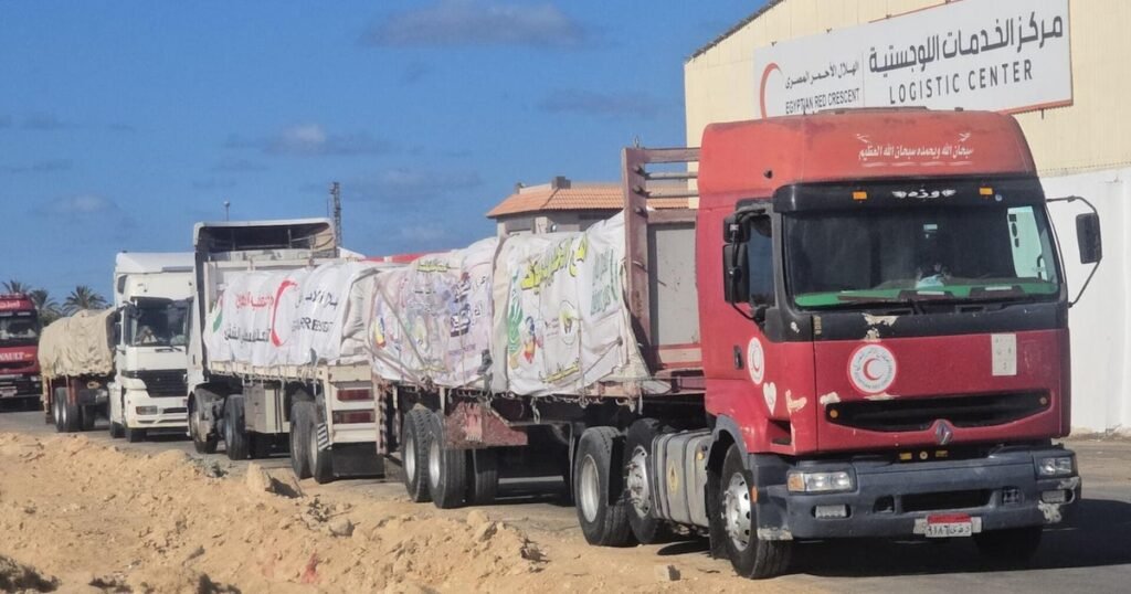 Aid trucks prepare to enter Gaza as Israel says ceasefire is in effect