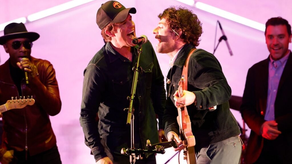 After a series of speakers, including representatives from the Altadena Town Counsel, Habitat for Humanity, Altadena Builds Back, Black Freedom Fund, and Altadena Girls, a “safe haven for teenage girls” launched by a mother-daughter team that moved to the town after losing their home in a Nashville flood, Dawes took the stage to recreate their version of “I Love L.A.” with Brad Paisley — an encore of their performance opening last year’s Grammy Awards ceremony.
