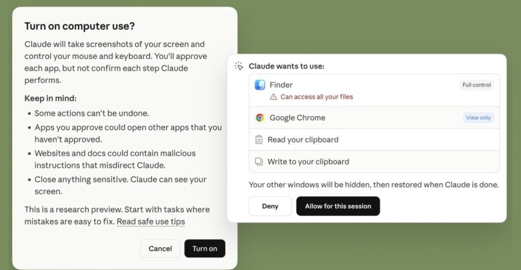 To access the feature, the Claude desktop app must be running on a supported macOS device and paired with the chatbot’s mobile app. The update works by prioritizing connectors to supported services first, such as Slack and Google Workspace apps, but will still execute tasks if a connector isn’t available by directly controlling your browser, mouse, keyboard, and display. Anthropic says Claude will “always ask for your explicit permission” before exploring, scrolling, and clicking as needed to complete a task.