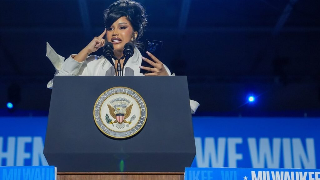 At the rally, Cardi slammed Trump as being “a man who cares only about making himself rich and cutting taxes for his billionaire friends,” telling the crowd, “Today is your wallet, tomorrow he’ll be conning you out of your healthcare rights.” She added that he was also “hustling” people by prompting them to buy his line of sneakers, including a pair printed with an image from the July 2024 assassination attempt.