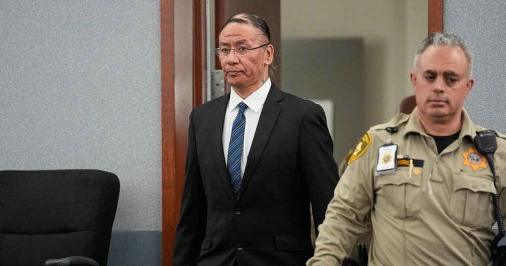 Wearing a blue tie and black suit with his hair pulled back, he sat quietly and took notes while his family sat in the back row of the crowded Las Vegas courtroom.