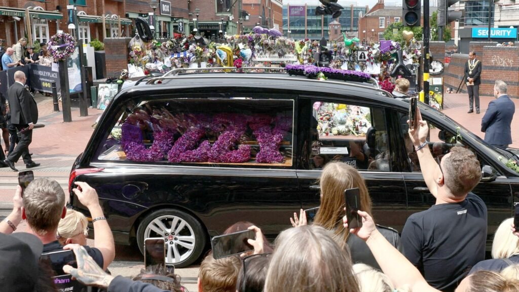 On a hugely emotional day, his presence could be felt throughout the city, with the star’s music playing in pubs and posters paying tribute: “Birmingham will always love you.”
