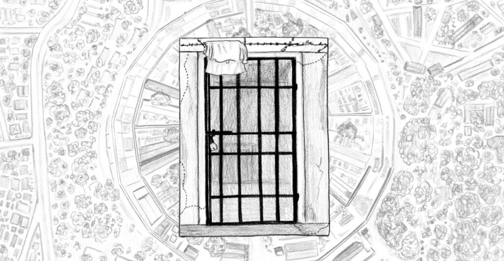 “A fluorescent flood light illuminates the clouds of mosquitoes feasting on me, which makes it hard to sleep, and when the mosquitoes retreat, the ants crawl in — in pulsing veins along the cell wall and floor, over every inch of skin all day.”