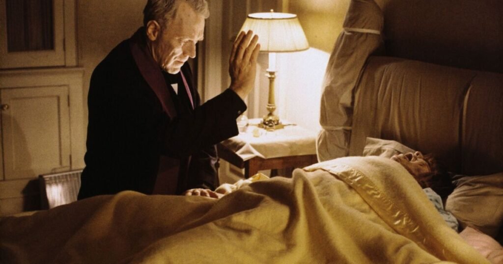 The Exorcist is a supernatural horror film directed by William Friedkin from a screenplay by William Peter Blatty, based on his 1971 novel. The film stars Ellen Burstyn, Max von Sydow, Jason Miller, and Linda Blair. The Exorcist’s synopsis reads: “This tale of an exorcism is based loosely on actual events. When young Regan (Blair) starts acting odd – levitating, speaking in tongues – her worried mother (Burstyn) seeks medical help, only to hit a dead end. A local priest (Jason Miller), however, thinks the devil may seize the girl. The priest requests to perform an exorcism, and the church sends in an expert (Sydow) to help with the difficult job.”