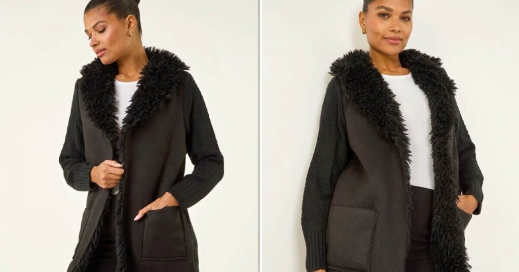 Christmas fashion shoppers wanting a smart but cosy cover up this winter that is somewhere between a cardigan and a coat should look to the coatigan. Womenswear brand Roman has a Black Longline Faux Shearling Knit Coatigan that is reduced from £45 to £36 with a discount code.